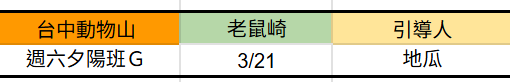 * 戶外課朝日班為上午10點,夕陽班為下午2點,紅字為夜間課,晚上6點上課